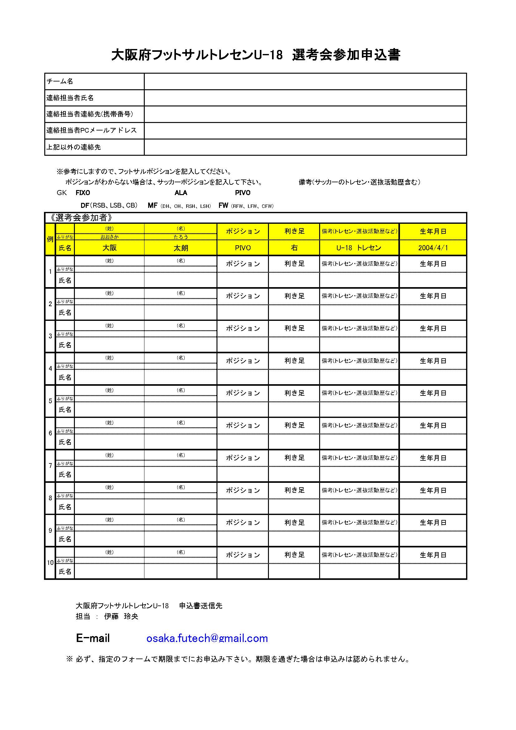 大阪府サッカー協会 フットサル委員会では、U-18トレセン活動を実施致しますので、ご理解とご協力のほど宜しくお願い致します。(サッカーとフットサルの融合・普及・育成・強化の為に行います。)